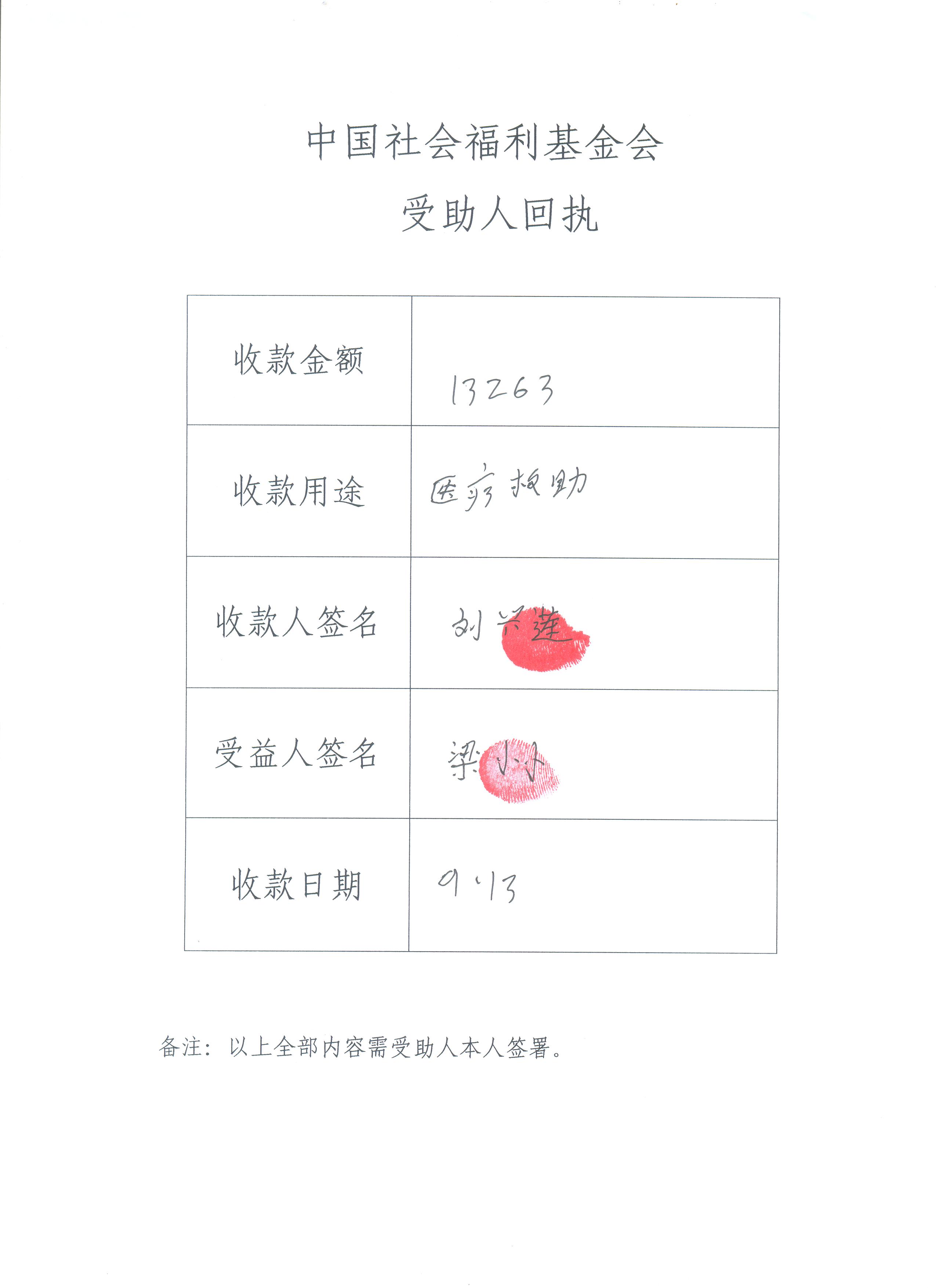 截止2012年9月13日,共募集善款13263元。所有善款来自于支付宝网友的爱心捐赠。
