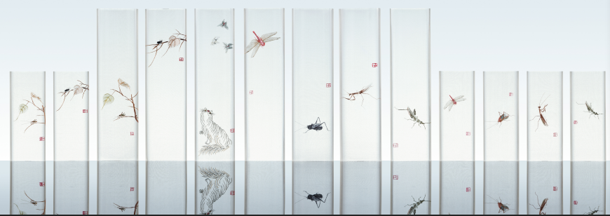 该系列产品充分发掘了传统双面湘绣“绣花花生香,绣鸟鸟闻声”的特点,揉合时尚水晶元素、高科技和创意设计,创制一系列造型简洁、形态多变、手感舒适、极具观赏性的独特功能化产品,并以生活为源点,使人们在日常生活需求中增强了对非遗文化的认知。该系列产品设计精巧,款式别处心裁,注重从人性结构出发,讲究曲线与人接触时的完美吻合,让手感圆润饱满,不仅仅追求设计简约,同时倡导自然、质朴、简约的生活方式。不仅反映了湖南湘绣精湛手工艺,同时也再现了“白石老人”的绘画艺术,由于采用了湘绣独特针法,使得作品中的虫儿纤毫毕现,灵气逼人,细致入微,具有极高的观赏价值和艺术趣味。